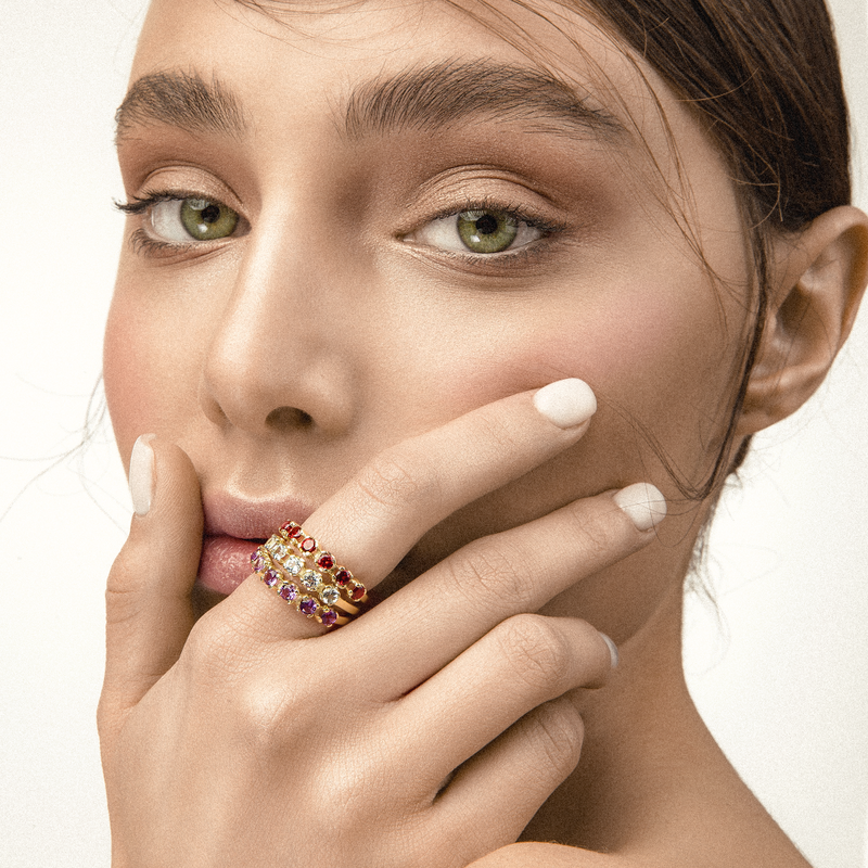 ოქროს ბეჭედი ციტრინებით/ამეთვისტოებით/ტოპაზებით