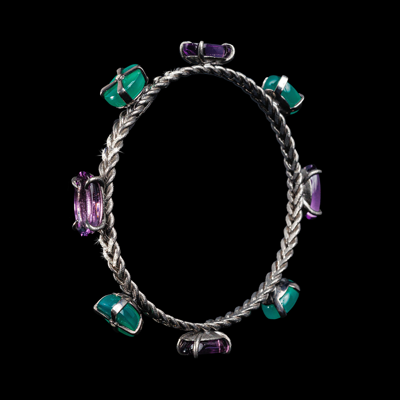 ოქროს სამაჯური ამეთვისტოებით და აქატებით